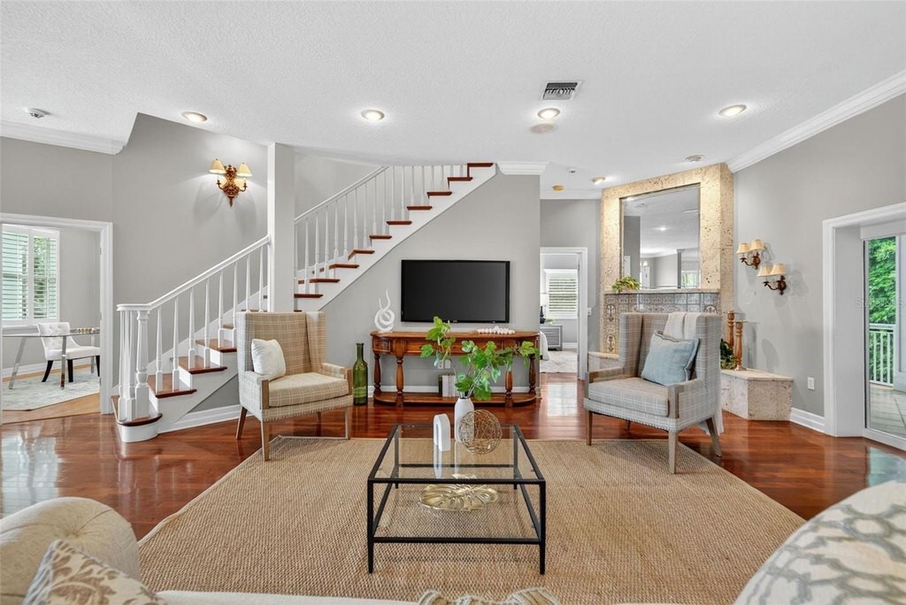 CUSTOM COASTAL LIVING AT ITS FINEST. Are you most inspired by the tranquil sound of waves lapping gently against the riprap on the waters' edge, the serene beauty of lushly landscaped grounds, or the exceptional craftsmanship of a custom-designed home? Here, you can have it all! Positioned on approximately .63 acres in highly sought-after NW Bradenton, this very unique property offers a beautiful three-story, 4-bedroom, 3.5-bath residence and 2 adjacent waterfront lots providing a myriad of options in its use. Wake up to breathtaking water views and end your day with stunning sunsets from your private rooftop perch, accessed by a charming spiral staircase. EVERY INCH OF THIS HOME REFLECTS QUALITY - stepping inside you are greeted by the warmth of rich wood floors and the elegance of crown molding that frames each room with quiet sophistication: a high-end classic kitchen features a large breakfast room, custom wood cabinetry, two dishwashers, a Miele built-in coffee system, filtered water system, a spacious walk-in pantry and elevator access from the garage. Warm wood floors, plantation shutters throughout, and a cozy fireplace in the great room that flows onto a large, screened porch add richness and charm. Work from home? The 4th bedroom has served as a private office for this homeowner for years. An elegant, curved staircase enhances the home’s thoughtful layout, providing access to a large upstairs bonus room centered between two ensuite bedrooms, all with private balconies overlooking the bay—ideal for guests or family members to enjoy their own tranquil escape. ADDITIONAL HIGHLIGHTS include an elevator accessing all 3 stories; large laundry room with floor-to-ceiling cabinetry, a 3-car oversized garage with workbench, extensive storage with air-conditioned space, an epoxy-type floor coating, and a circular drive and multi-car paver parking pad. THIS EXCEPTIONAL PROPERTY DELIVERS THE BEST OF COASTAL FLORIDA LIVING - Quiet elegance, unmatched views, and the comfort of a truly custom home—just minutes from IMG Academy, Robinson Preserve (682-acre nature preserve featuring trails, picnic areas, scenic lookouts), area beaches, and everything Bradenton has to offer. Speak to your real estate professional for more details and an opportunity to view this exceptional property.
